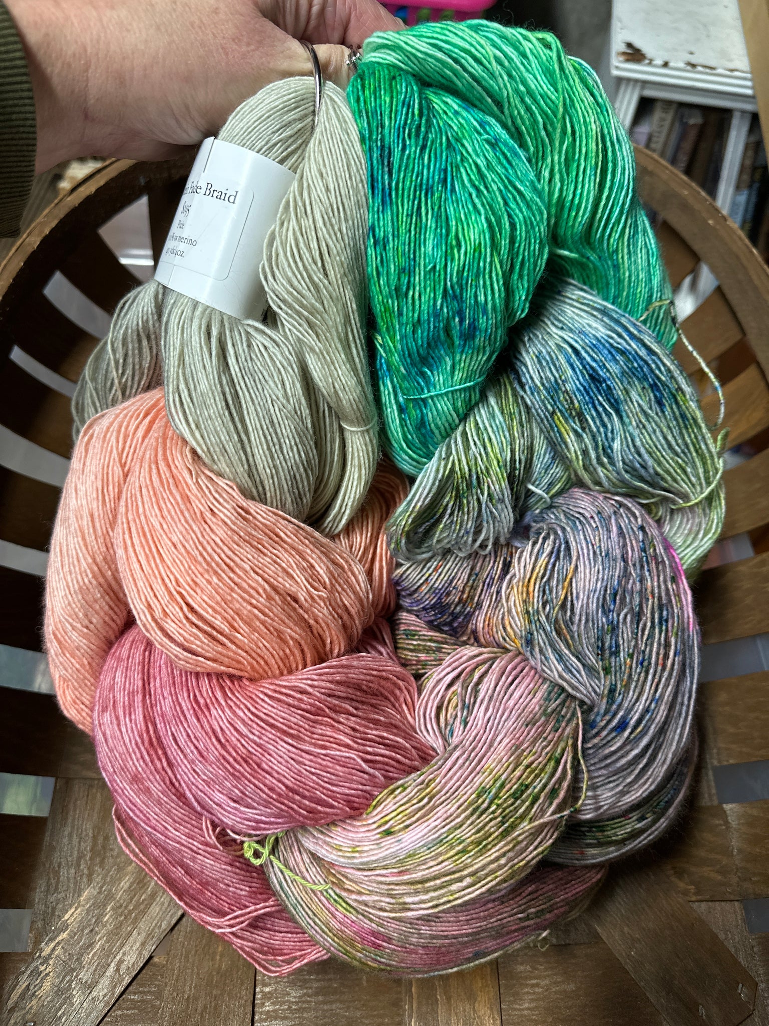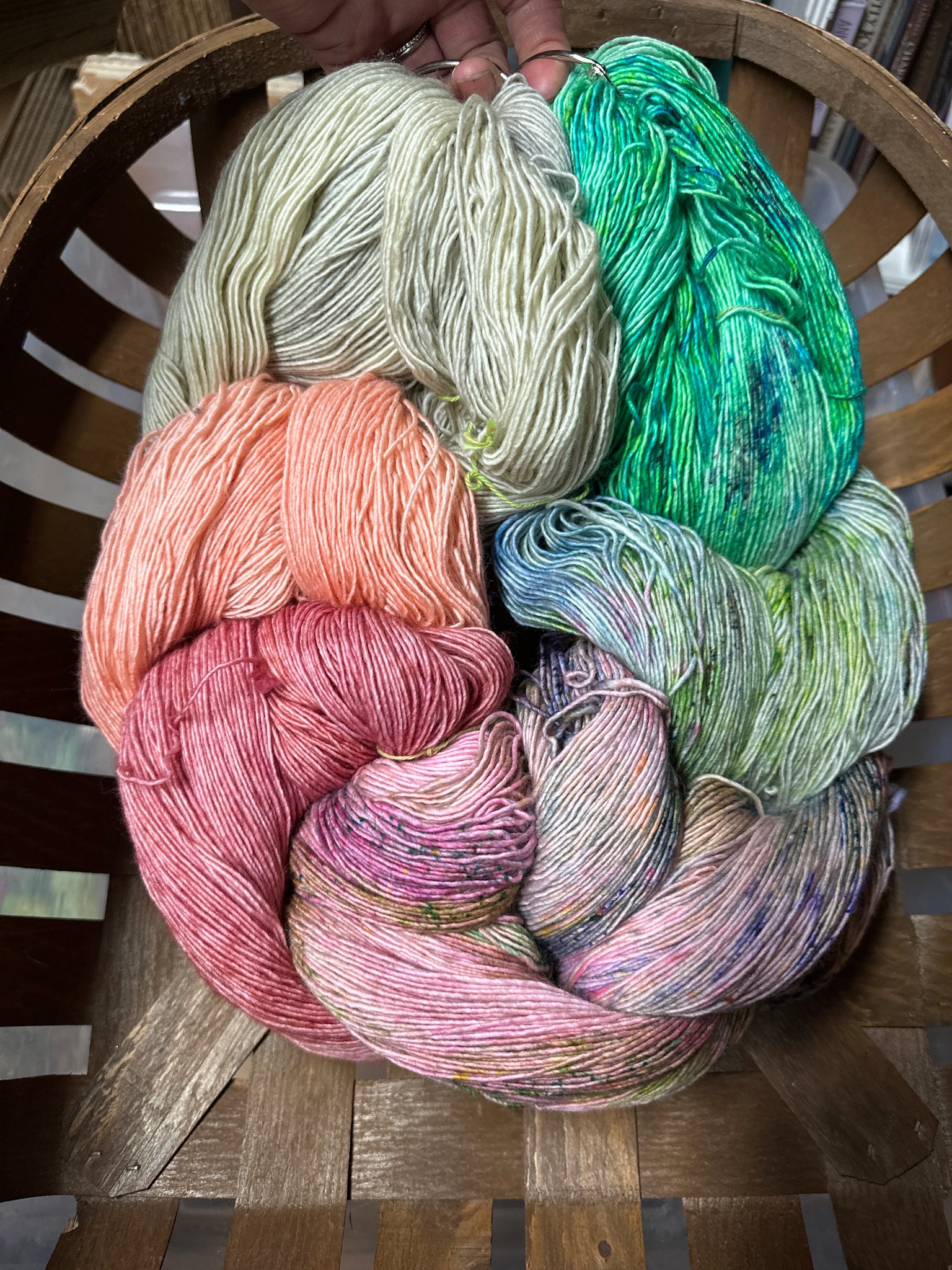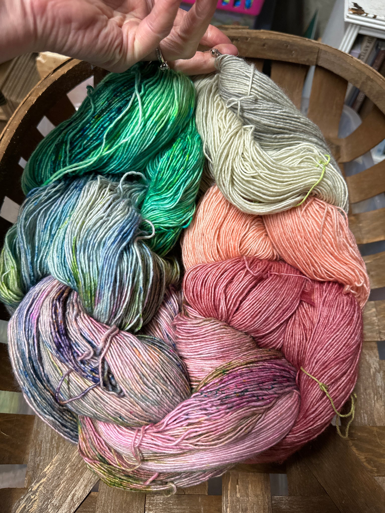 Base yarn: Pixie Single Ply: 100% sw merino; 430 yds/4oz.