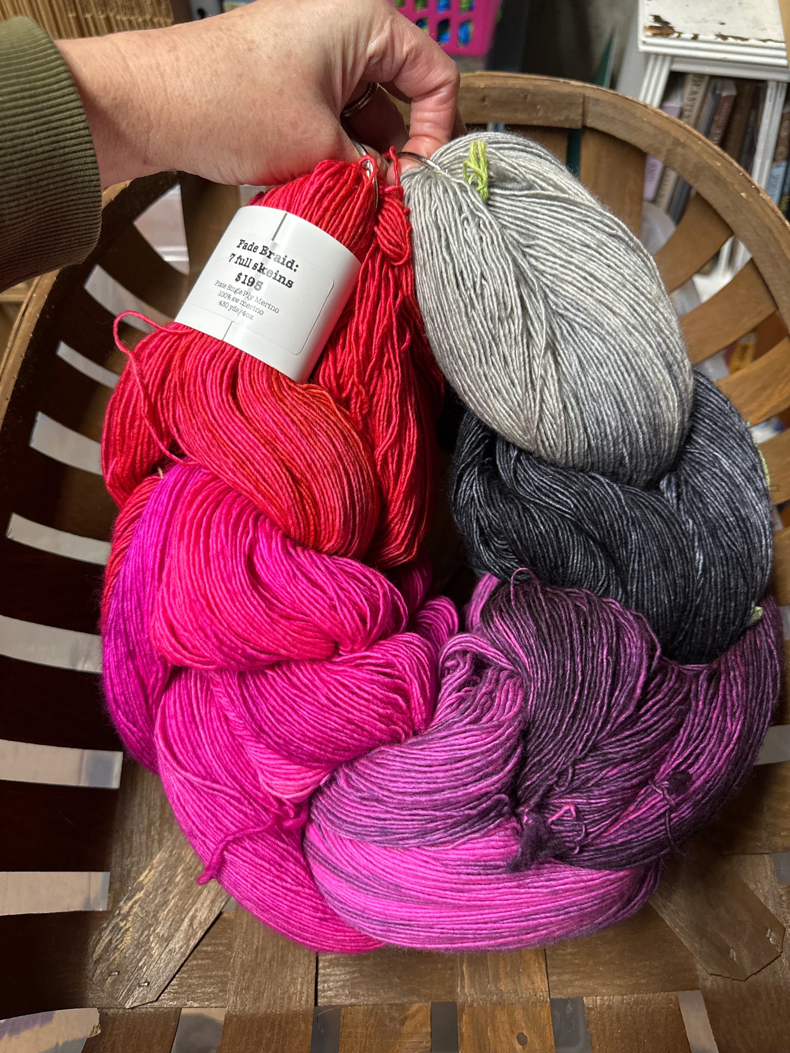 I've been really into marling lately (holding two strands of yarn together and switching one out at a time to create a fade effect with the color transitions) and I have created several 7 skein fade sets that will hopefully inspire you to try this technique too! Marling is a great way to experience the crazy colors in so many of my Dragonfly Fibers variegated and speckled colors, without having to worry about flash pooling at all