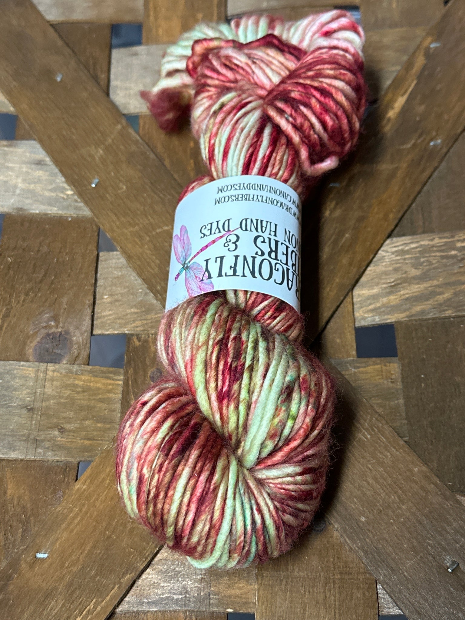 Each of these skeins are one of a kind, and one skein is enough yardage for a quick hat, cowl, or even slippers (in most sizes)