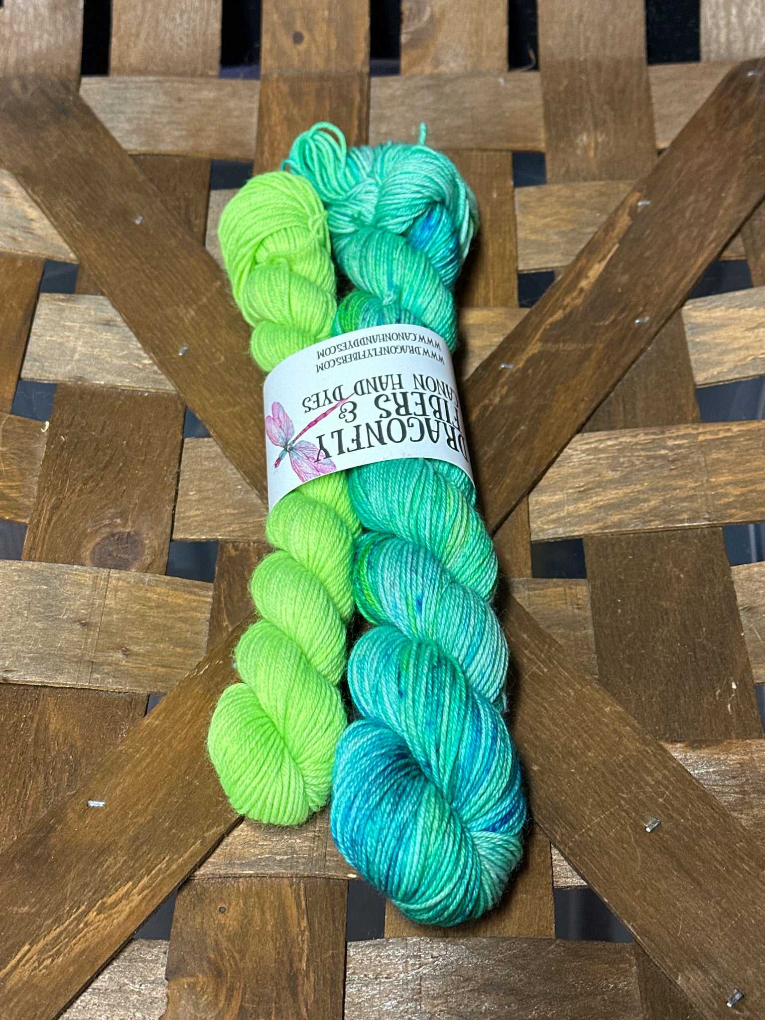 Sets are one 50g skein (230 yds) of fingering weight yarn plus one 20g contrast mini (93 yds) on the same base as the 50g skein