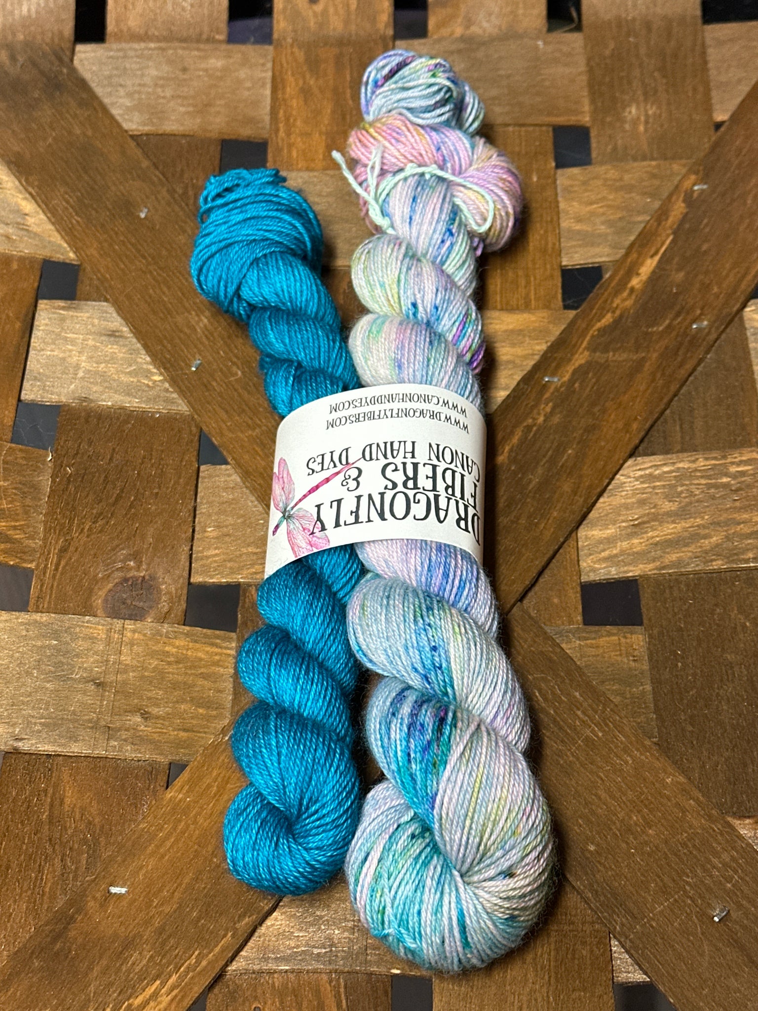 Sets are one 50g skein (230 yds) of fingering weight yarn plus one 20g contrast mini (93 yds) on the same base as the 50g skein