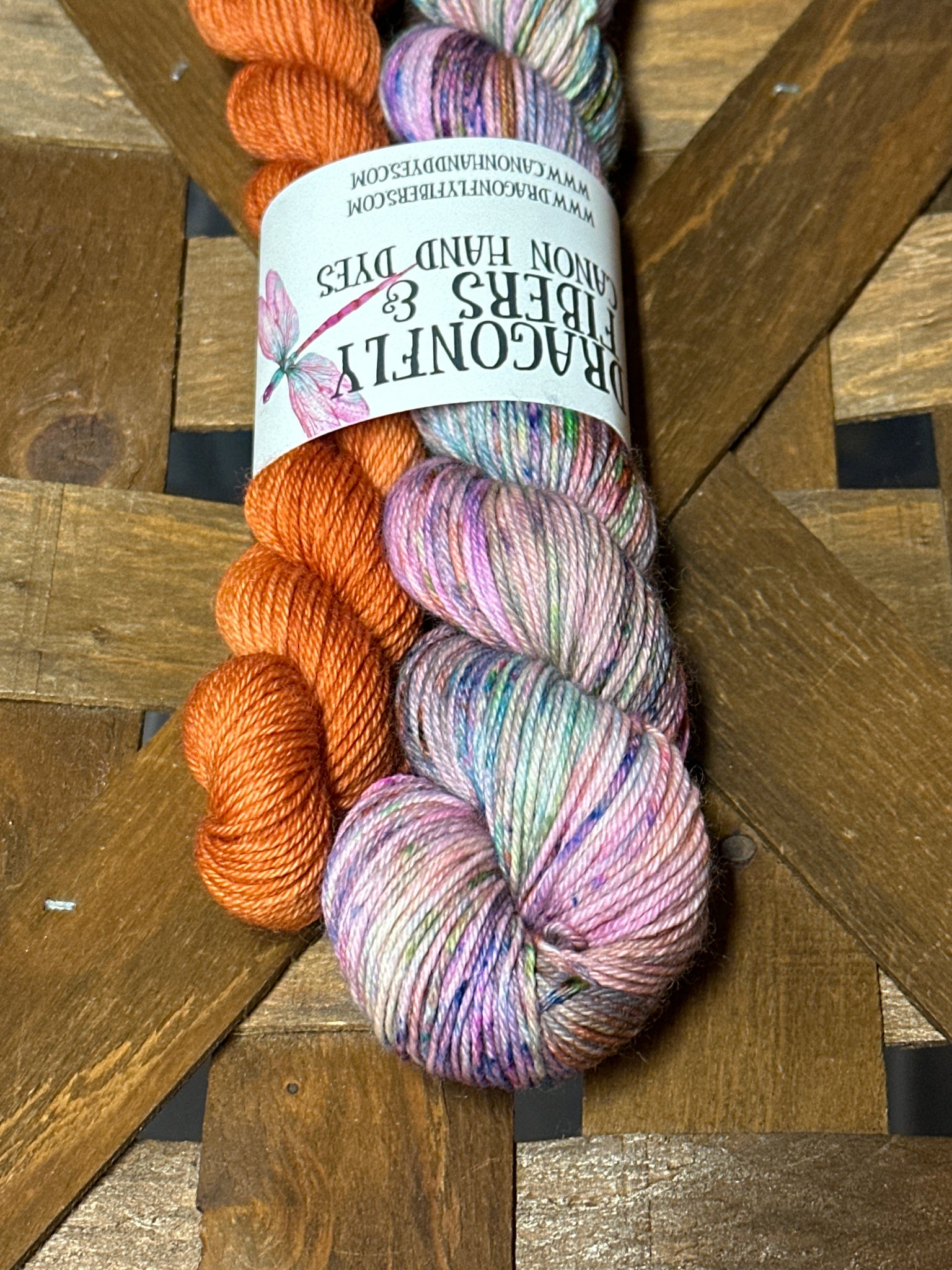 Sets are one 50g skein (230 yds) of fingering weight yarn plus one 20g contrast mini (93 yds) on the same base as the 50g skein