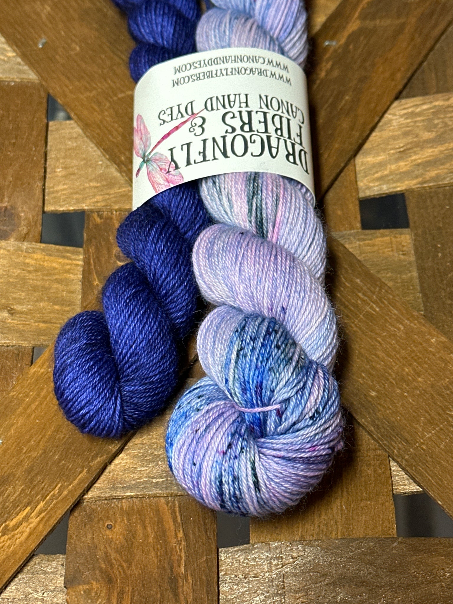 Each sock set is unique!Sets are one 50g skein (230 yds) of fingering weight yarn plus one 20g contrast mini (93 yds) on the same base as the 50g skein