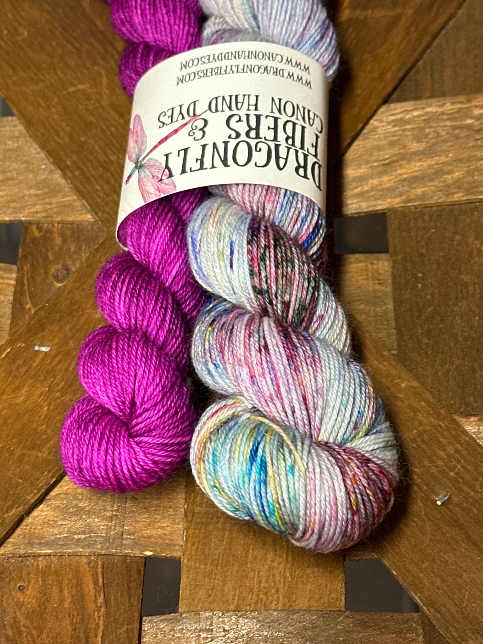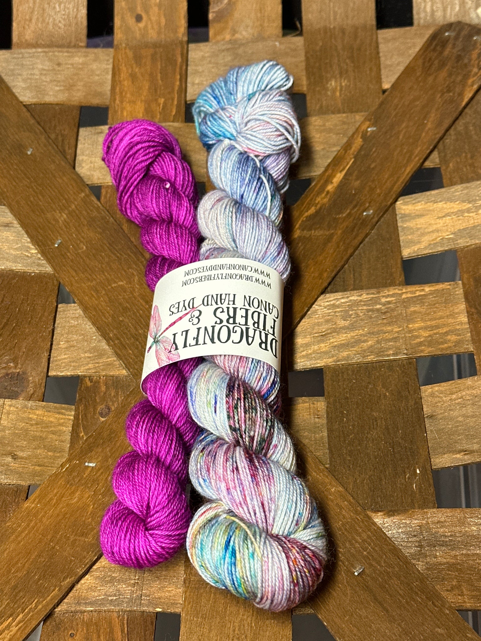 Sets are one 50g skein (230 yds) of fingering weight yarn plus one 20g contrast mini (93 yds) on the same base as the 50g skein